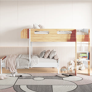 2-in-1 Solid Pine Twin Single Bunk Bed in Natural