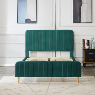 Queen Channel Tufted Velvet Fabric Bed Frame in Green