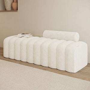 213cm Curved Boucle 3.5 Seater Sofa in Cream White