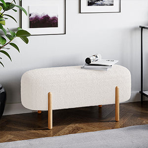 Boucle Fabric Bench with Pillar Legs in Light Beige
