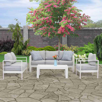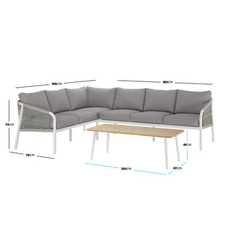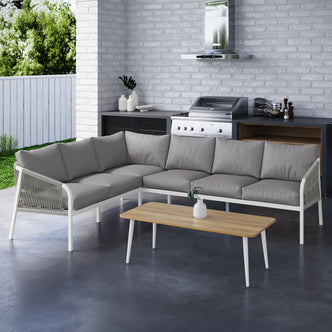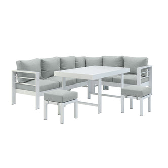 Luxo 6-Seater Aluminium Outdoor Set in White & Grey