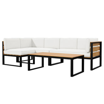 5 Seater Corner Outdoor Sofa Set with Table in Beige