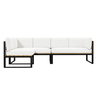 5 Seater Solid Timber L Shape Outdoor Sofa in Beige