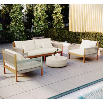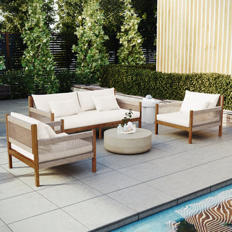 4 Seater Hardwood Acacia Outdoor Sofa Set in Cream