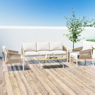 4 Seater Wicker Outdoor Sofa Set in Natural