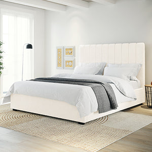 Ginnie & Oriona Queen Bed & Mattress Set in Cream White