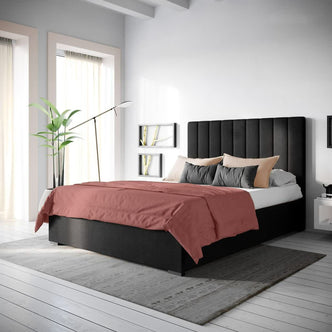 Queen Velvet Fabric Bed Base in Ink