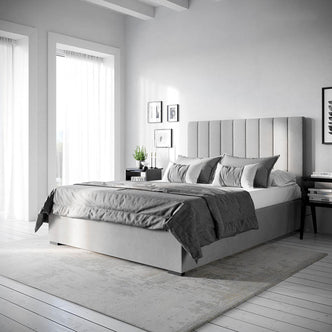 Queen Velvet Fabric Bed Base in Slate