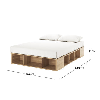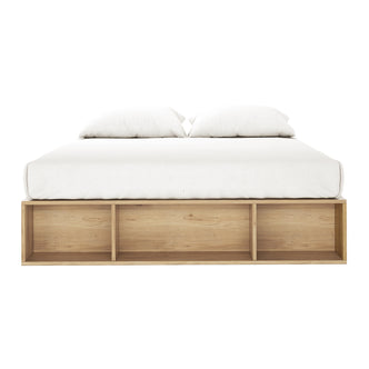 Queen Platform Bed Base with Storage in Oak