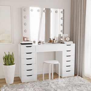Hollywood Makeup Vanity Table with LED Mirror in White