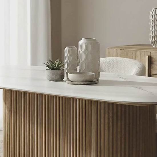 Aeris 180cm Marble Look Dining Table With Wood Base in Oak