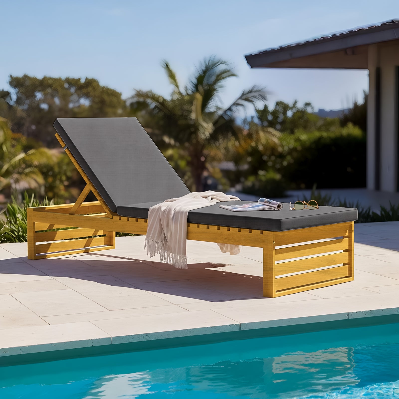 The Alabat Solid Timber Outdoor Sun Lounger with Cushion presents the perfect blend of style and functionality for outdoor relaxation. Crafted to withstand the elements, this sun lounger boasts exceptional weather resistance, ensuring its longevity even in challenging outdoor conditions. Crafted from strong acacia wood, known for being durable and beautiful, the sun lounger is both charming and comfortable. Designed with the utmost comfort in mind, the sun lounger comes complete with a plush cushion that enhances the overall lounging experience.