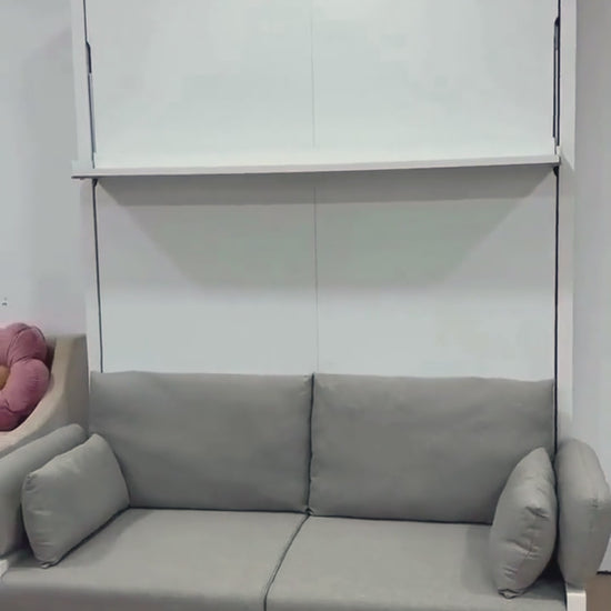 Byron Queen 2-in-1 Foldout Wall Bed & Sofa in White & Grey