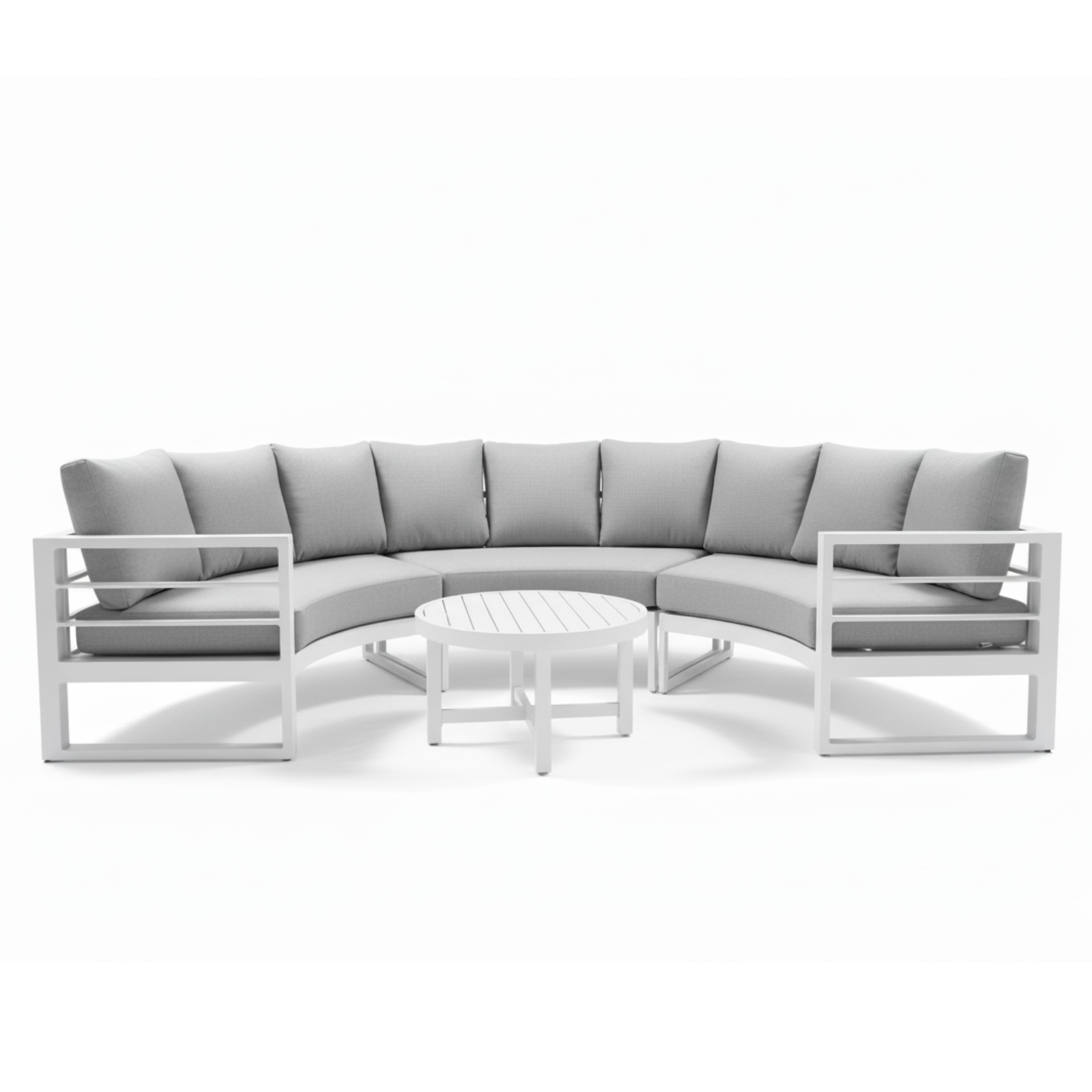 - Stylish Design: The set includes two single-seater armrest sofas, one armless sofa, and a coffee table. The arched, half-round design creates a modern look that fits any outdoor setting. The sleek aluminium slat tabletop is perfect for drinks or books.