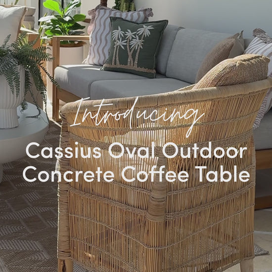 Elevate your outdoor spaces or indoor living areas with the Cassius Oval Outdoor Concrete Coffee Table in White. This modern concrete coffee table combines stylish design with practical durability, making it an ideal centerpiece for entertaining or relaxing year round. Its smooth oval shape, weatherproof and UV-resistant finish, and low-maintenance construction offer the perfect blend of elegance and resilience to withstand diverse Australian elements.