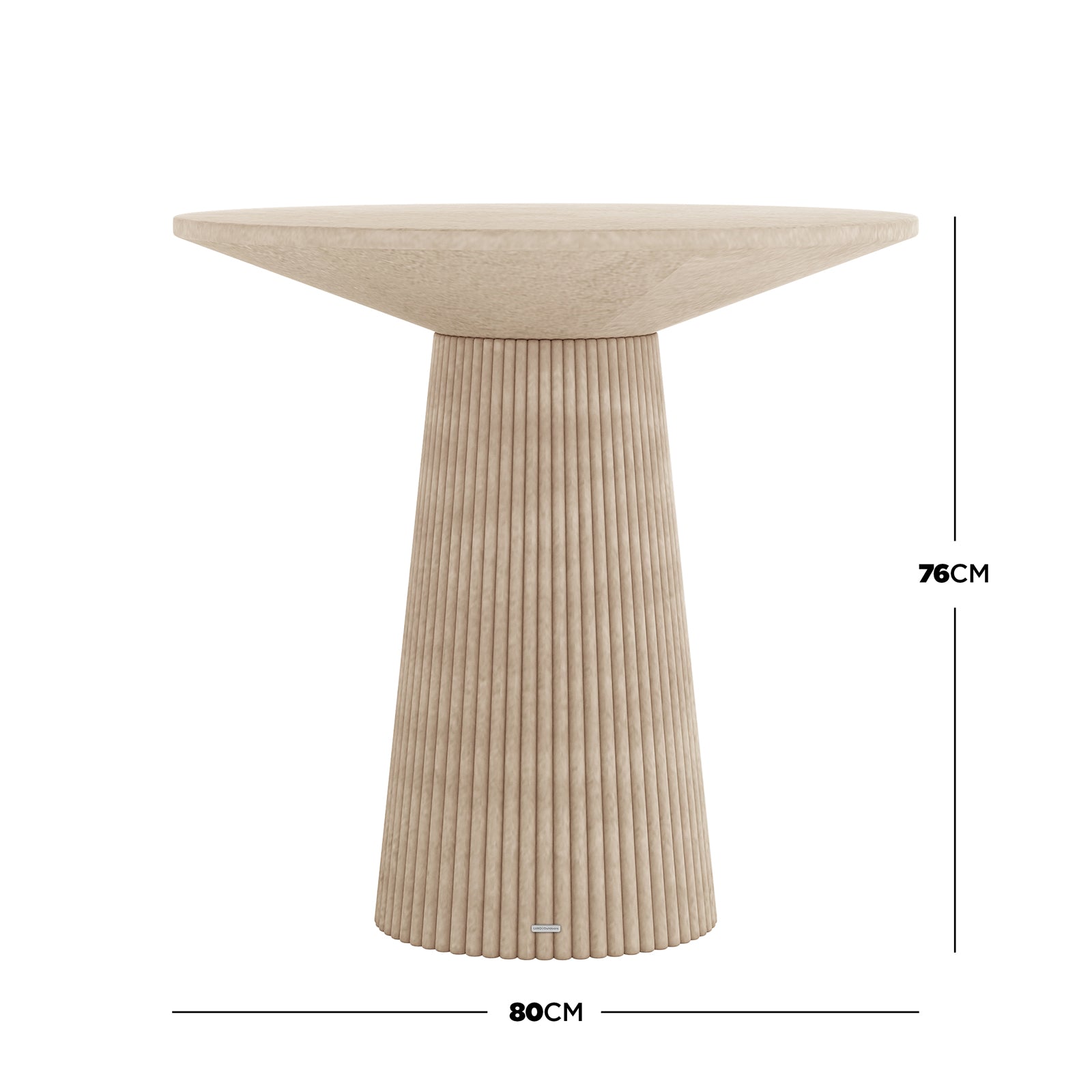 Welcome guests with elegance and style using the Darien 80cm Round Concrete Bistro Table in a luxurious ivory marble-look finish. This modern round concrete table combines a striking fluted base with a smooth, refined surface, creating a designer statement in any space. Whether placed in your foyer with your decor pieces, used as a small dining table, or styled as a coffee table, Darien offers versatile functionality for both indoor and outdoor settings. Built with strong metal reinforcement and premium materials, it’s a perfect blend of beauty and durability.