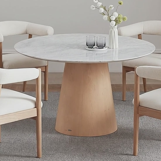 The Dina Dining Table combines the timeless beauty of genuine Italian Carrara marble with the natural warmth of solid timber for a look that’s effortlessly modern yet enduring. Designed to anchor your dining space with quiet confidence, Dina’s rounded silhouette and refined materials create a welcoming, sophisticated atmosphere that elevates every meal and complements any contemporary Australian home.