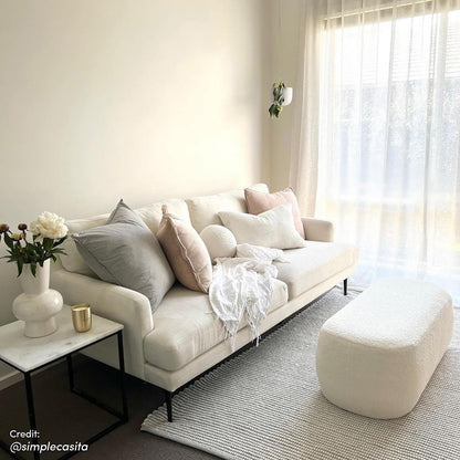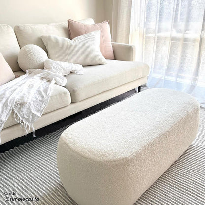 Jamie 110cm Boucle Fabric Ottoman in Cream White