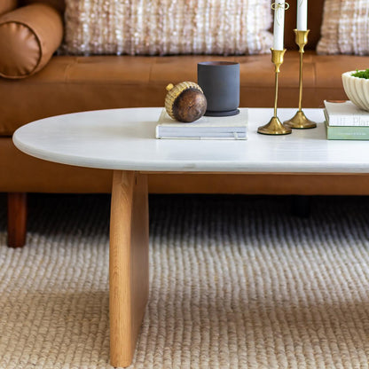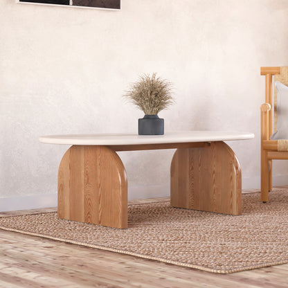 Kerry 120cm Solid Oak Oval Coffee Table in White & Natural