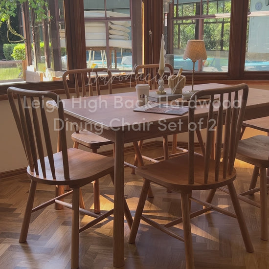 Add warmth and style to your dining area with the Leigh Solid Oak High-back Dining Chair Set by Luxo Living, made in collaboration with The DIY Decorator. These spindle chairs blend rustic charm with a modern farmhouse look, designed to handle daily use and add character to any room.