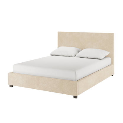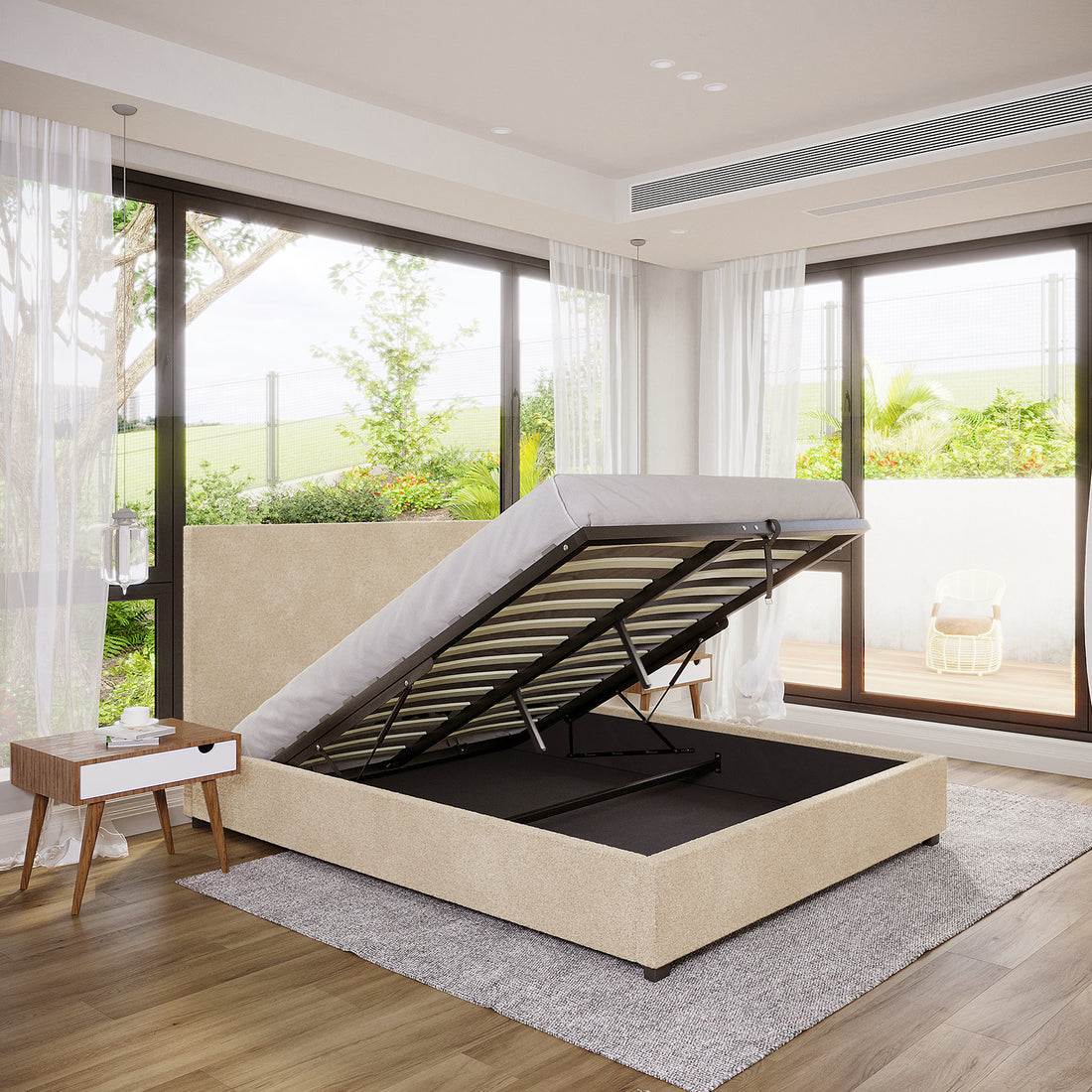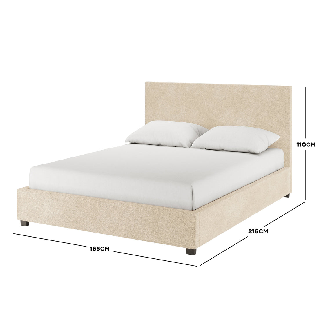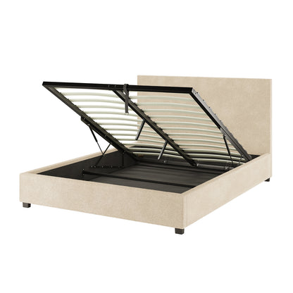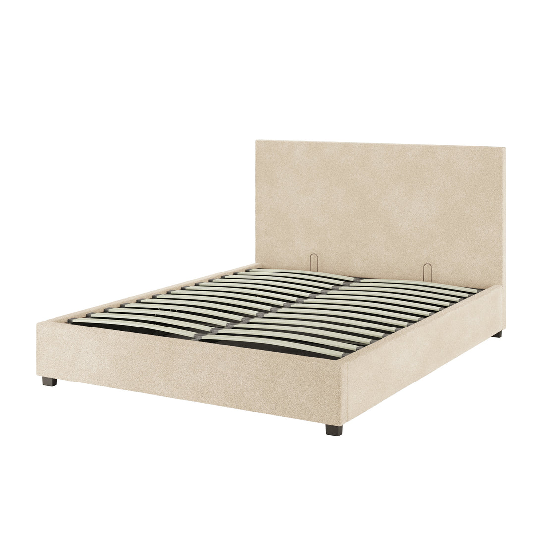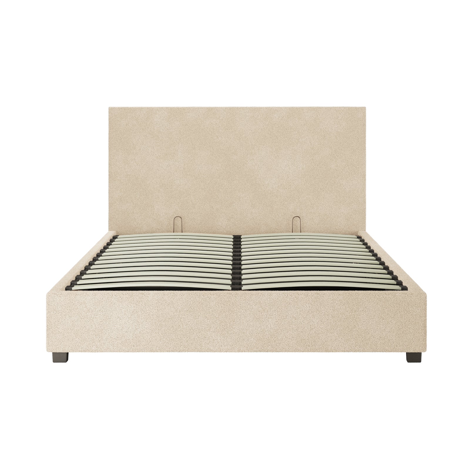 Lovita Bouclé Bed Frame with Gas Lift Storage - Cream Beige (Queen)