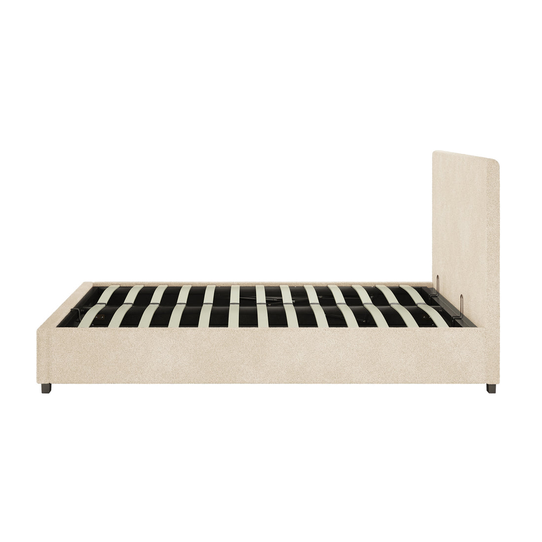 Lovita Queen Boucle Gas Lift Bed Frame in Cream Beige