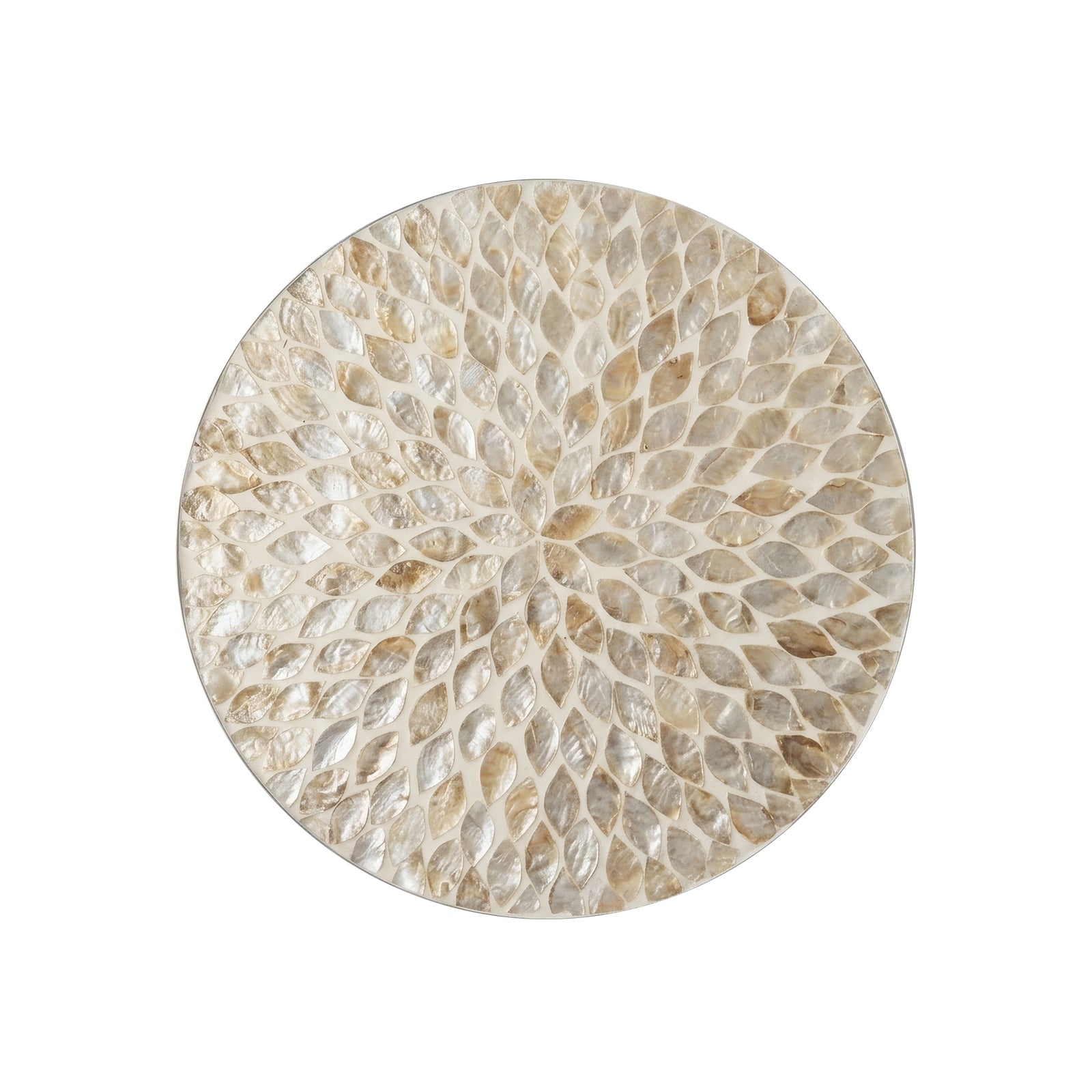 - Stunning handcrafted mother-of-pearl mosaic in an elegant sand hue, creating a unique, sophisticated look.