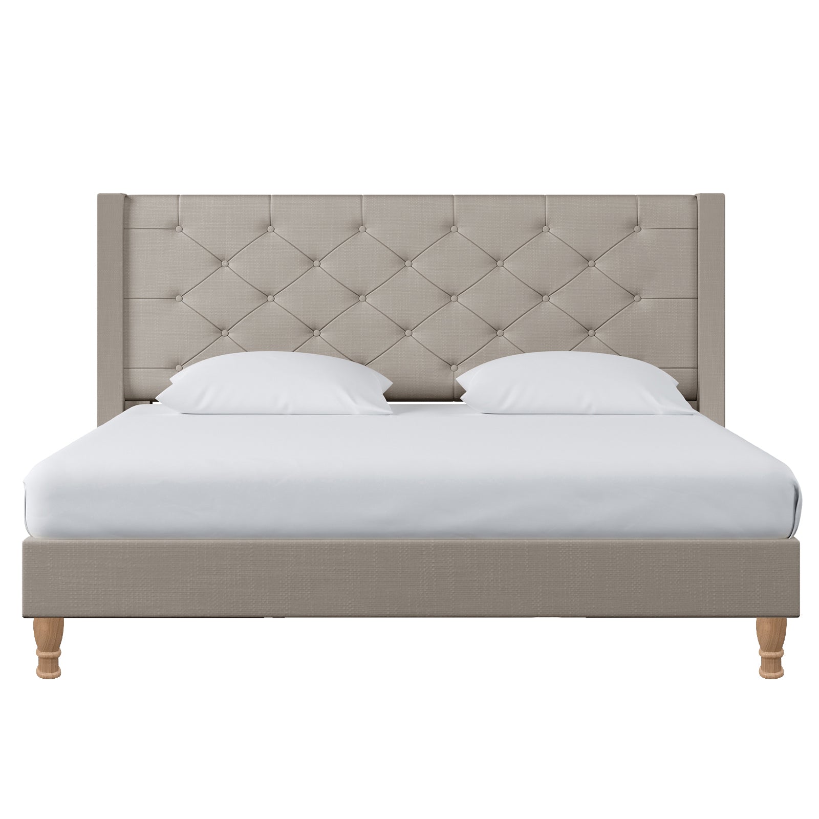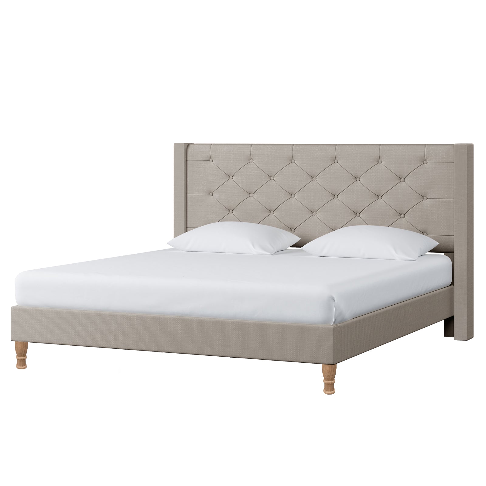 Maggie Winged Fabric Bed Frame – King (Warm Grey)