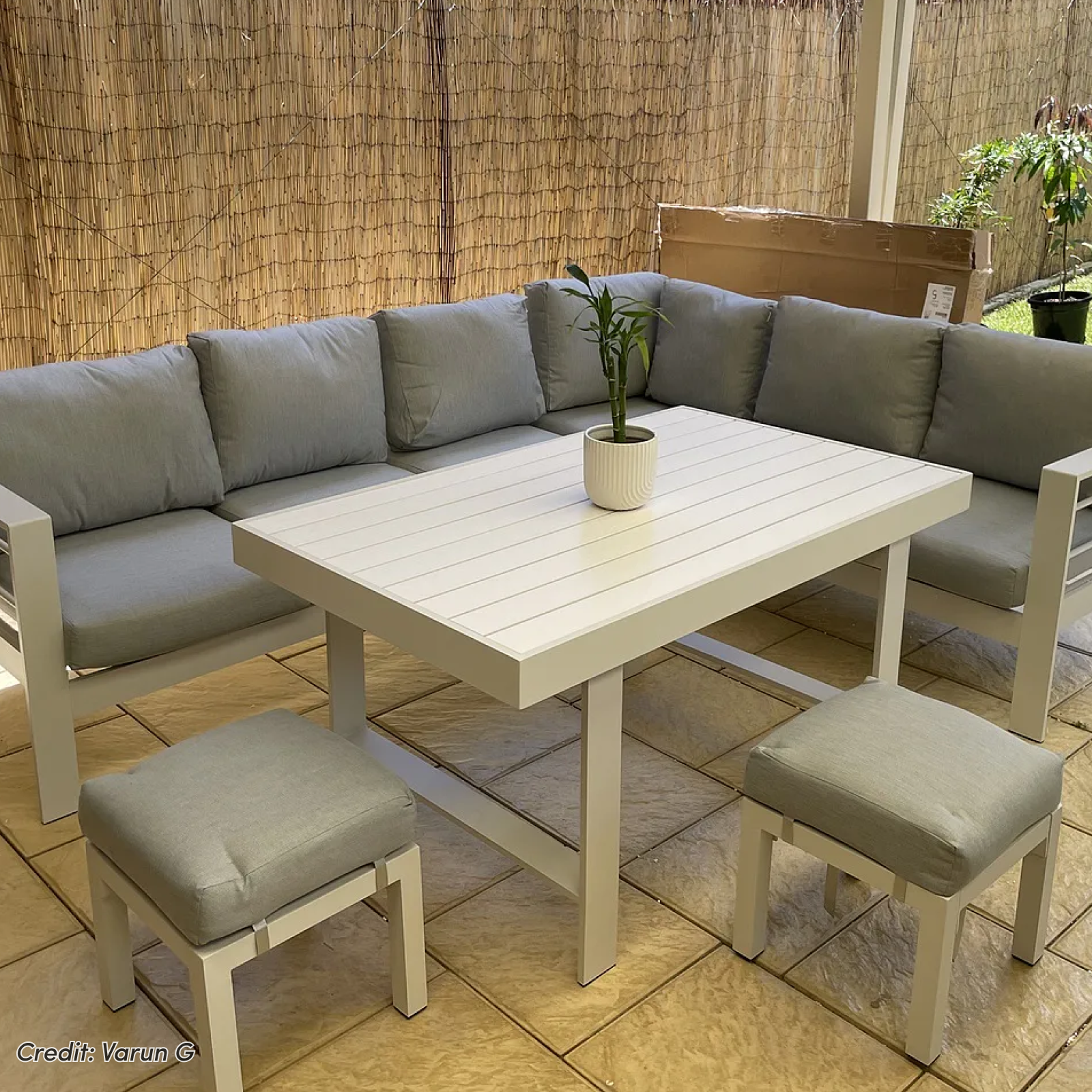 Portland Outdoor Corner Sofa Lounge with Foot Stools in White & Grey