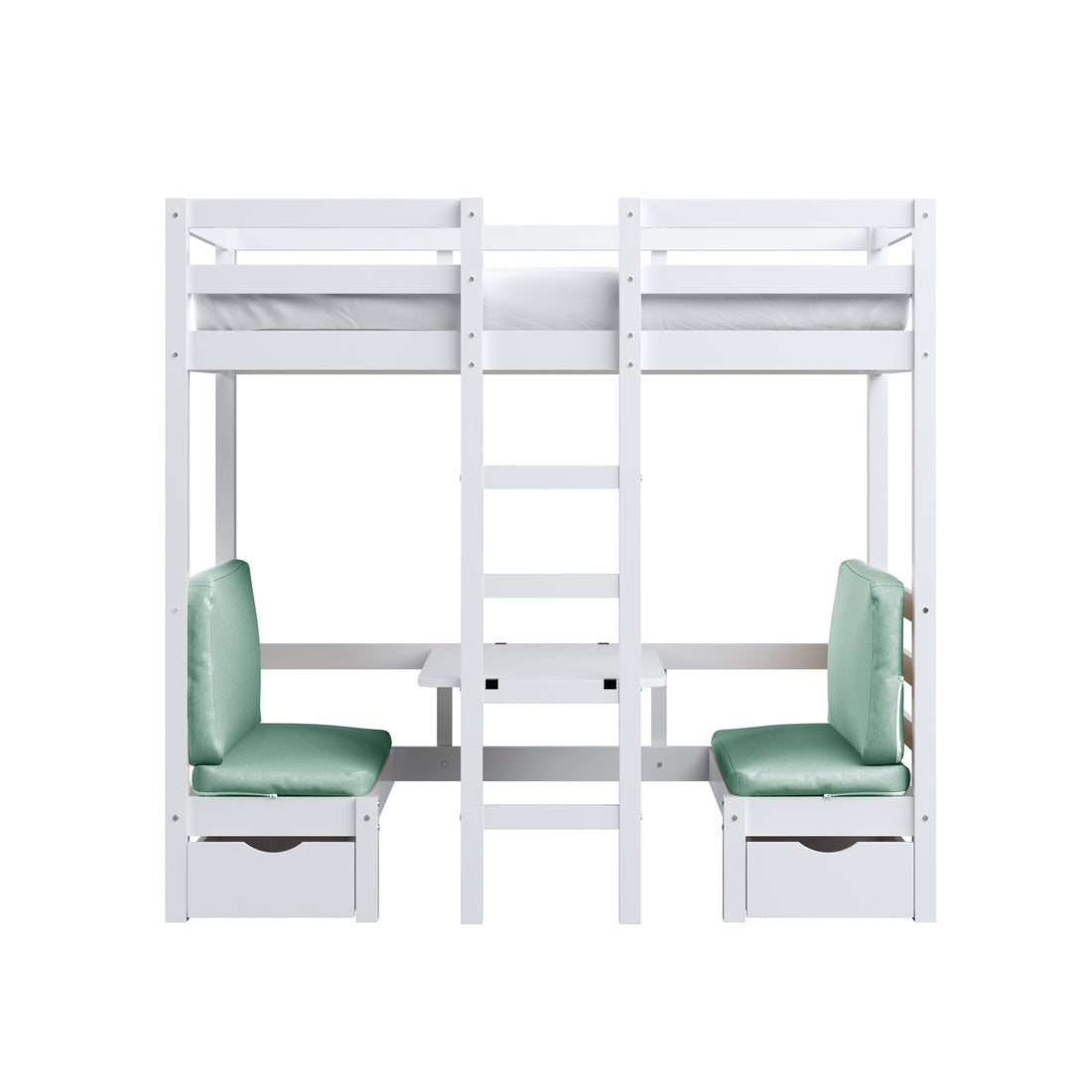Timothy Solid Pine Loft Bed with Desk in Mint Green
