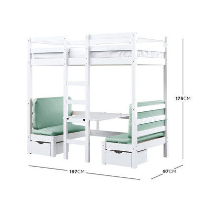 Timothy Timber Loft Bed with Table & Benches