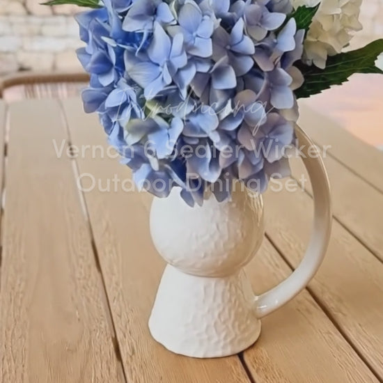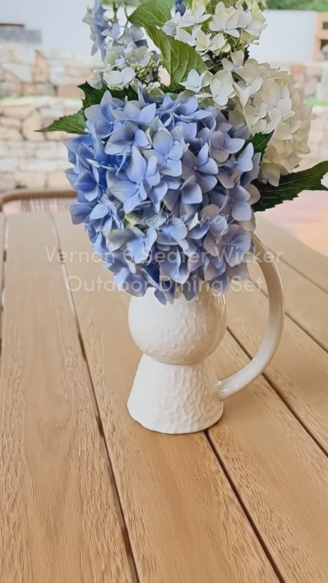 Elevate your outdoor dining experience with the Vernon 6 Seater Aluminium Wicker Outdoor Dining Set. This stunning set, designed for both comfort and style, is the perfect addition to any balcony, shaded patio, or semi-enclosed outdoor space.